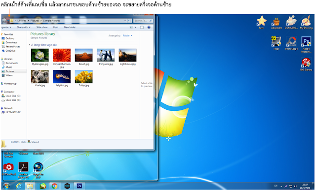 ปรับขนาดหน้าต่างด้วย Aero Snap
